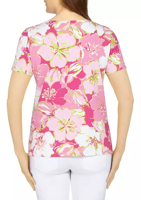 Best Sale π Alfred Dunner Petite Copper Canyon Asymmetrical Hem 3/4 Sleeve Floral Print Top π