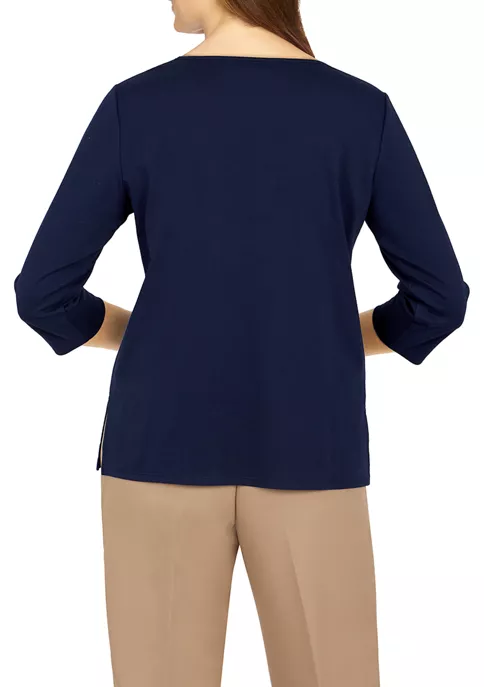 Best Sale π Alfred Dunner Petite Copper Canyon Asymmetrical Hem 3/4 Sleeve Floral Print Top π