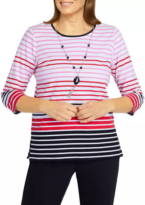 Hot Sale π Alfred Dunner Petite Copper Canyon Crew Neck Three-Quarter Sleeve Top π