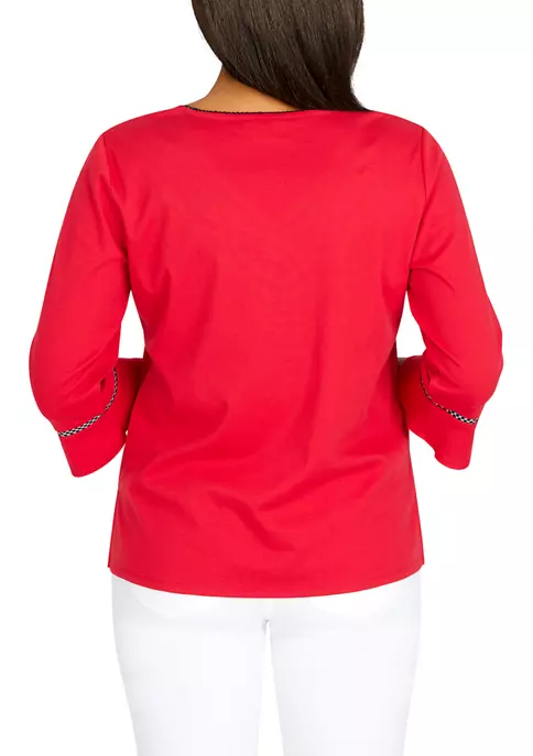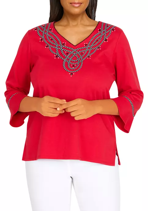 Promo π₯ Alfred Dunner Petite Copper Canyon Crew Neck Three-Quarter Sleeve Geo-Print Top π