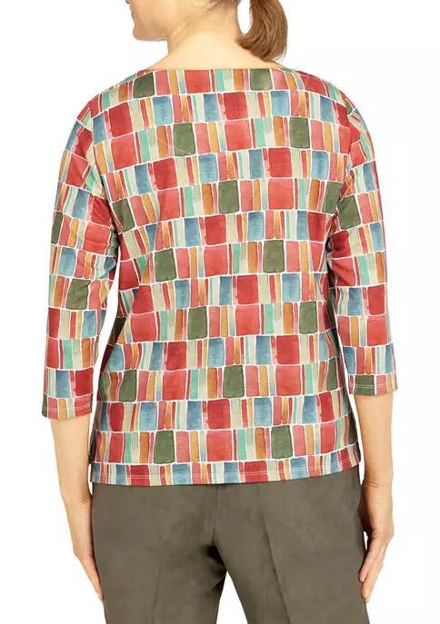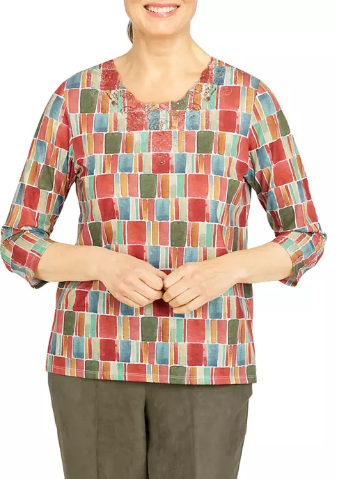 Wholesale β€οΈ Alfred Dunner Petite Copper Canyon Color Block 3/4 Sleeve Sweater β¨