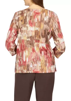 Wholesale β€οΈ Alfred Dunner Petite Copper Canyon Color Block 3/4 Sleeve Sweater β¨