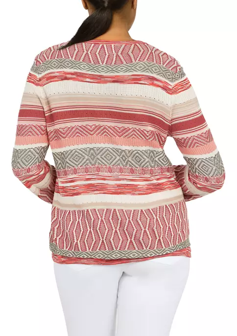 Promo π₯ Alfred Dunner Petite Copper Canyon Crew Neck Three-Quarter Sleeve Geo-Print Top π