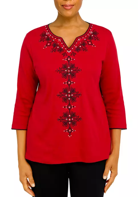 Hot Sale π Alfred Dunner Petite Copper Canyon Crew Neck Three-Quarter Sleeve Top π