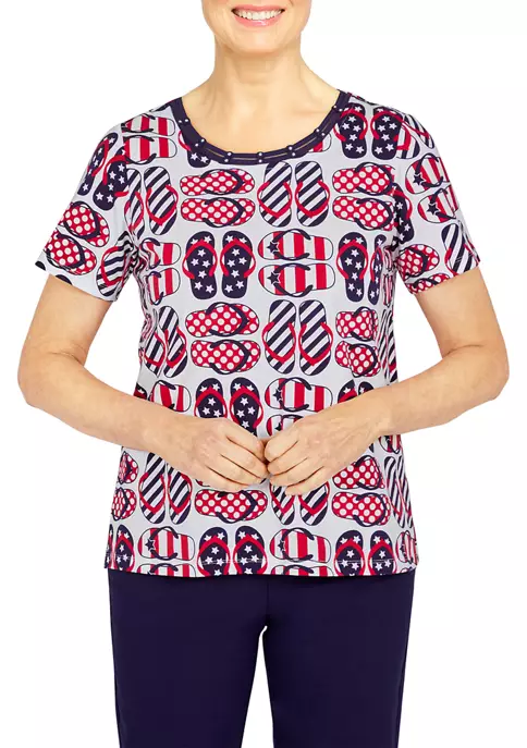 Promo π₯ Alfred Dunner Petite Copper Canyon Crew Neck Three-Quarter Sleeve Geo-Print Top π