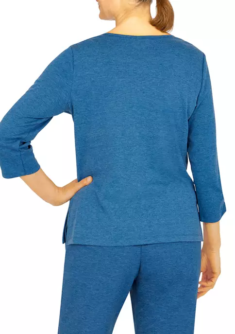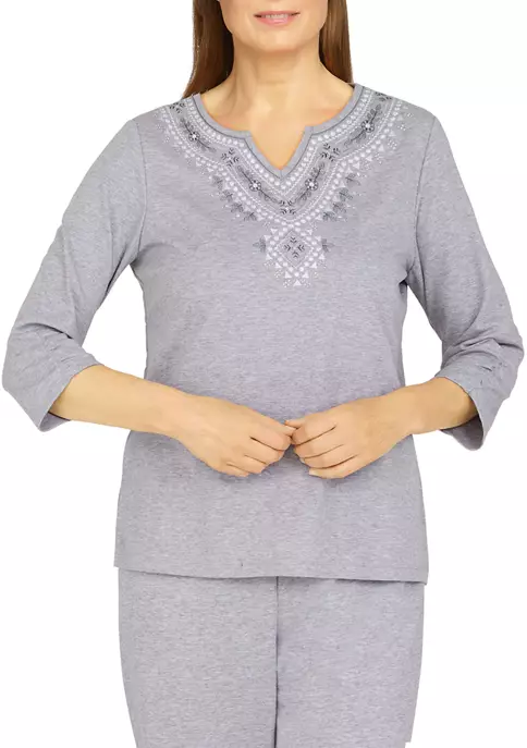Best Sale π Alfred Dunner Petite Copper Canyon Asymmetrical Hem 3/4 Sleeve Floral Print Top π