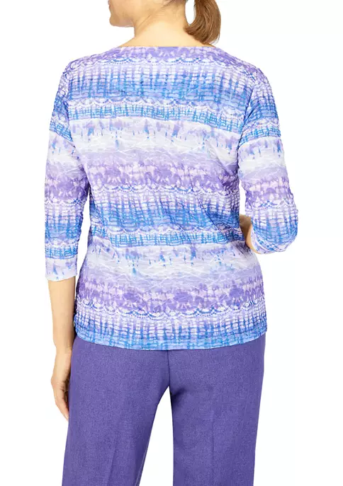 Promo π₯ Alfred Dunner Petite Copper Canyon Crew Neck Three-Quarter Sleeve Geo-Print Top π