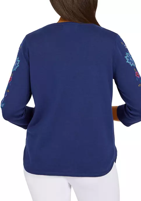 Best reviews of π Alfred Dunner Plus Size Sorrento Asymmetric Floral Embroidered Ribbed Top π₯°