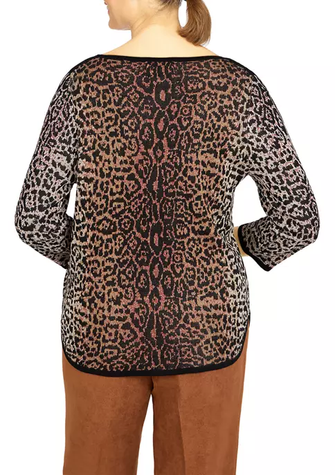 Promo 🔥 Alfred Dunner Petite Copper Canyon Crew Neck Three-Quarter Sleeve Geo-Print Top 🎉