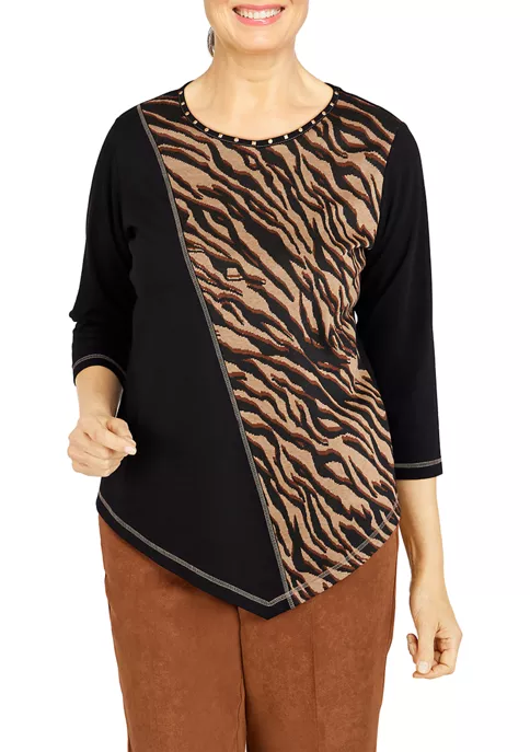 Hot Sale π Alfred Dunner Petite Copper Canyon Crew Neck Three-Quarter Sleeve Top π