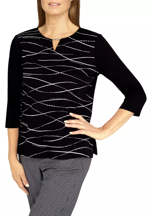 Best Sale π Alfred Dunner Petite Copper Canyon Asymmetrical Hem 3/4 Sleeve Floral Print Top π