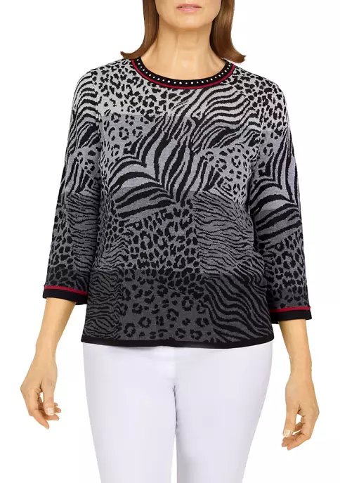 Best reviews of π Alfred Dunner Petite Sorrento Abstract Animal Smocked Hem Blouse π₯°
