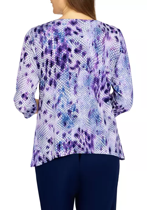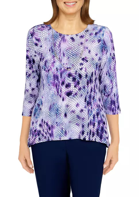 Best reviews of π Alfred Dunner Petite Sorrento Abstract Animal Smocked Hem Blouse π₯°