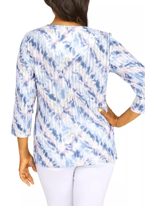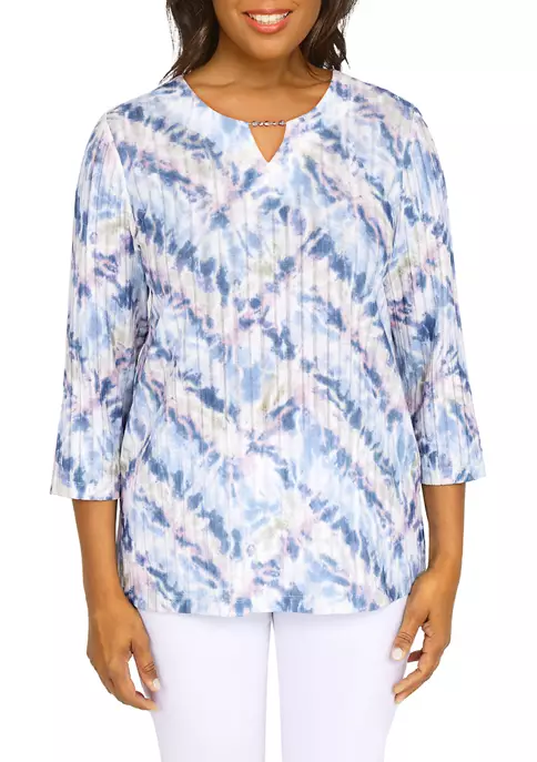 Promo π₯ Alfred Dunner Petite Copper Canyon Crew Neck Three-Quarter Sleeve Geo-Print Top π