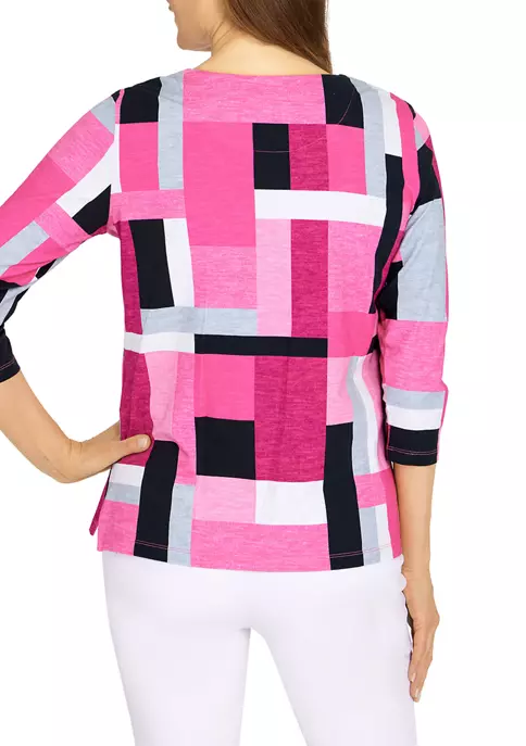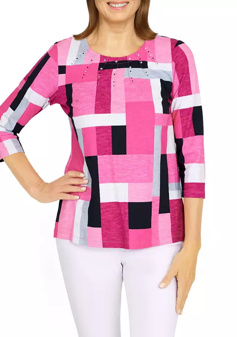 Promo π₯ Alfred Dunner Petite Copper Canyon Crew Neck Three-Quarter Sleeve Geo-Print Top π