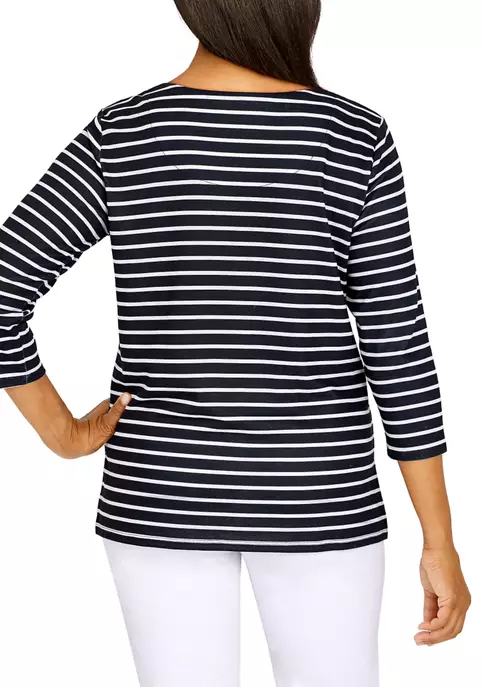 Best Sale π Alfred Dunner Petite Copper Canyon Asymmetrical Hem 3/4 Sleeve Floral Print Top π