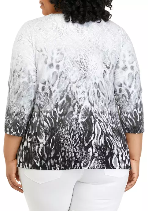 Best reviews of π Alfred Dunner Petite Sorrento Abstract Animal Smocked Hem Blouse π₯°