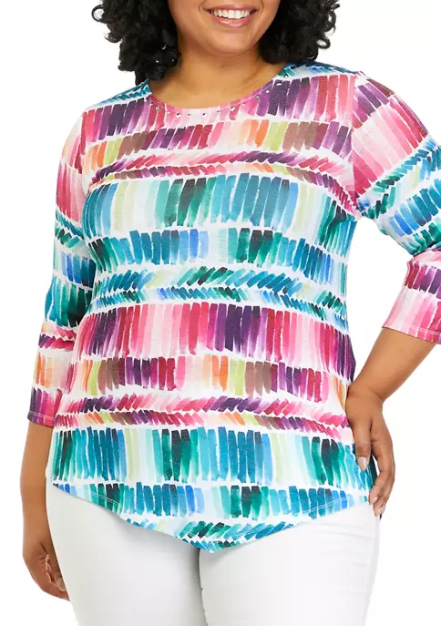 Hot Sale π Alfred Dunner Petite Copper Canyon Crew Neck Three-Quarter Sleeve Top π