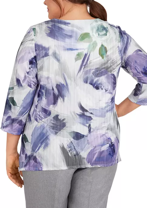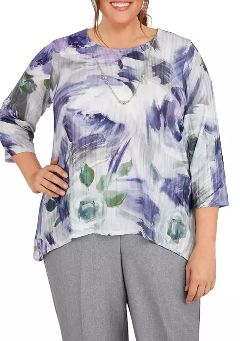 Best Sale π Alfred Dunner Petite Copper Canyon Asymmetrical Hem 3/4 Sleeve Floral Print Top π