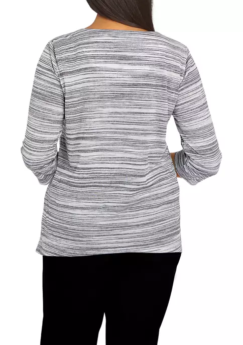 Best reviews of π Alfred Dunner Plus Size Sorrento Asymmetric Floral Embroidered Ribbed Top π₯°