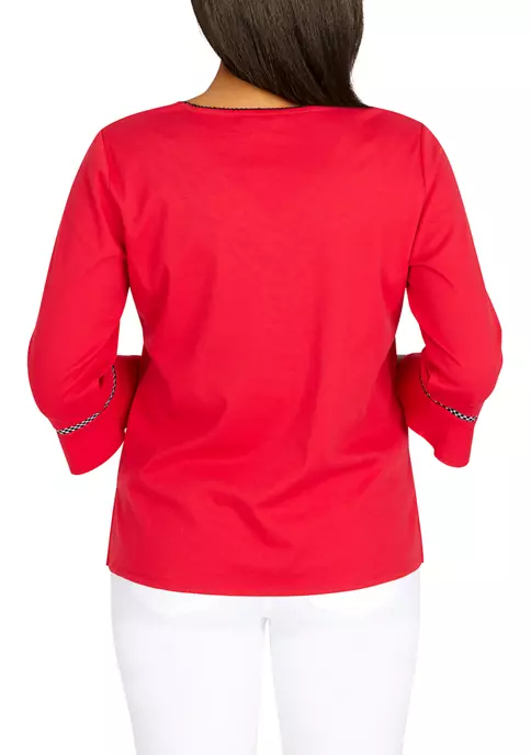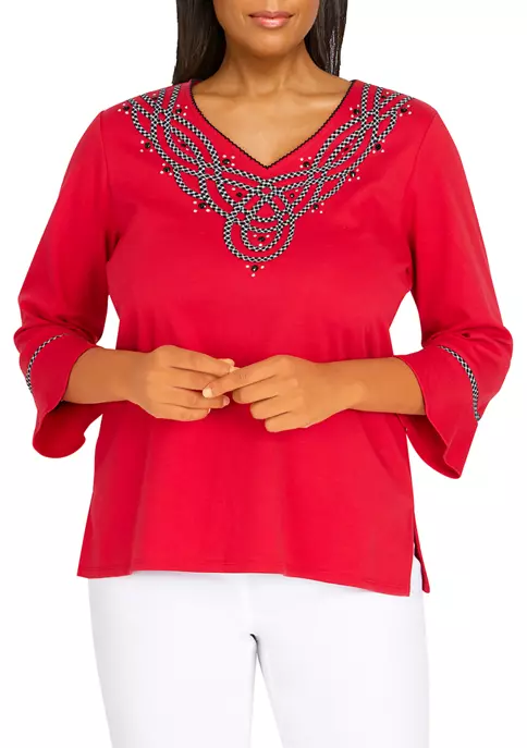 Hot Sale π Alfred Dunner Petite Copper Canyon Crew Neck Three-Quarter Sleeve Top π