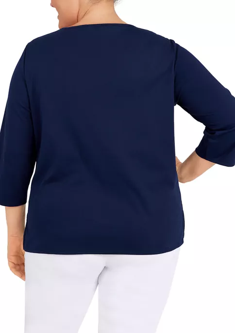Hot Sale π Alfred Dunner Petite Copper Canyon Crew Neck Three-Quarter Sleeve Top π