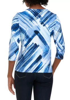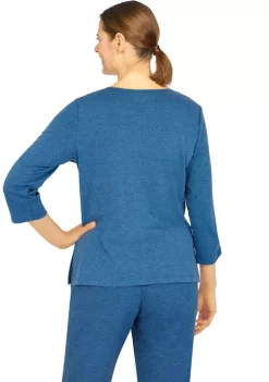 Cheapest π Alfred Dunner π© Women’s Floral Park Split Neck 3/4 Sleeve Heather Knit Top π
