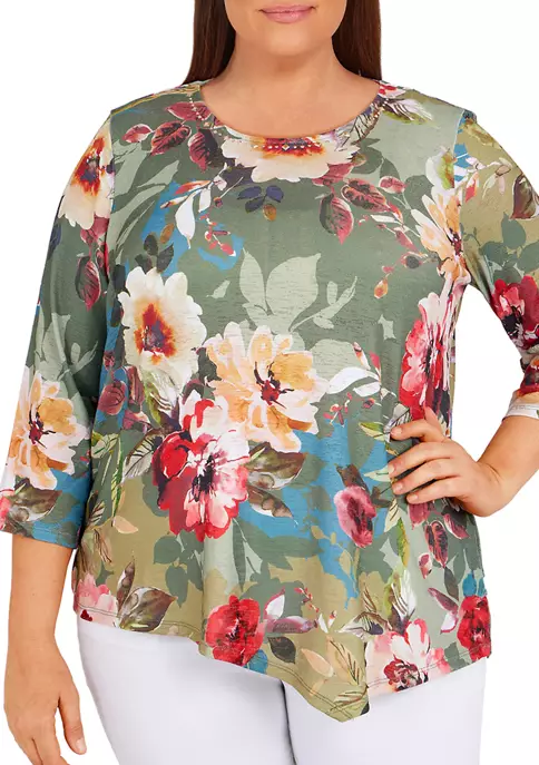 Hot Sale π Alfred Dunner Petite Copper Canyon Crew Neck Three-Quarter Sleeve Top π