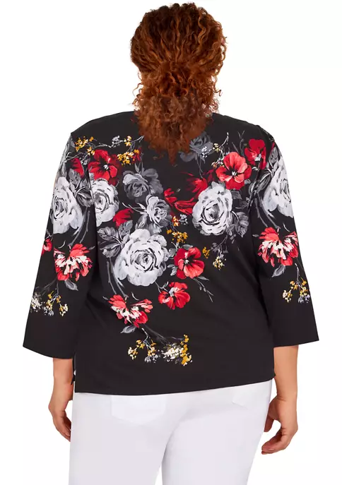 Best Sale π Alfred Dunner Petite Copper Canyon Asymmetrical Hem 3/4 Sleeve Floral Print Top π