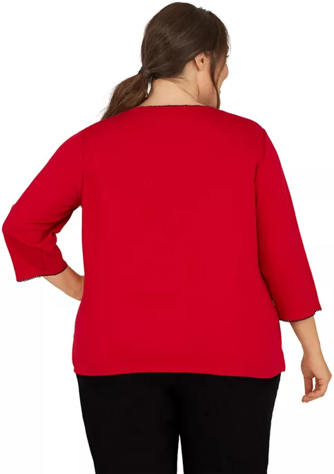 Promo π₯ Alfred Dunner Petite Copper Canyon Crew Neck Three-Quarter Sleeve Geo-Print Top π