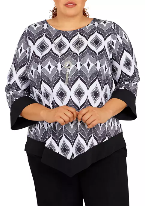 Best Sale π Alfred Dunner Petite Copper Canyon Asymmetrical Hem 3/4 Sleeve Floral Print Top π