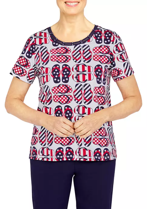 Best Sale π Alfred Dunner Petite Copper Canyon Asymmetrical Hem 3/4 Sleeve Floral Print Top π