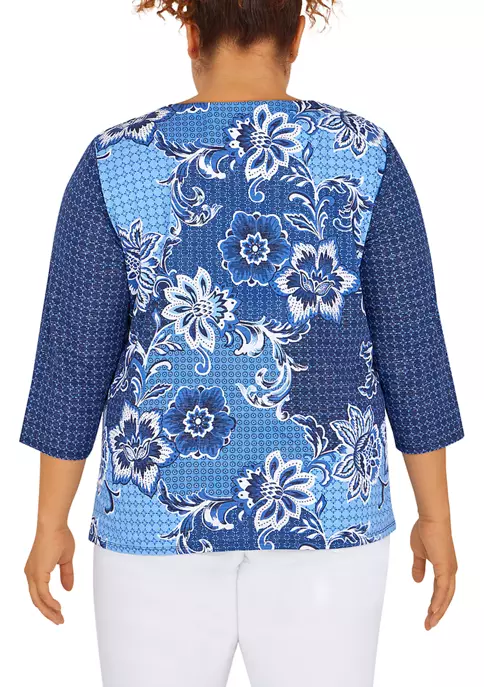 Wholesale π₯ Alfred Dunner Plus Size Sorrento Tapestry Floral Print Lace Neck Top β