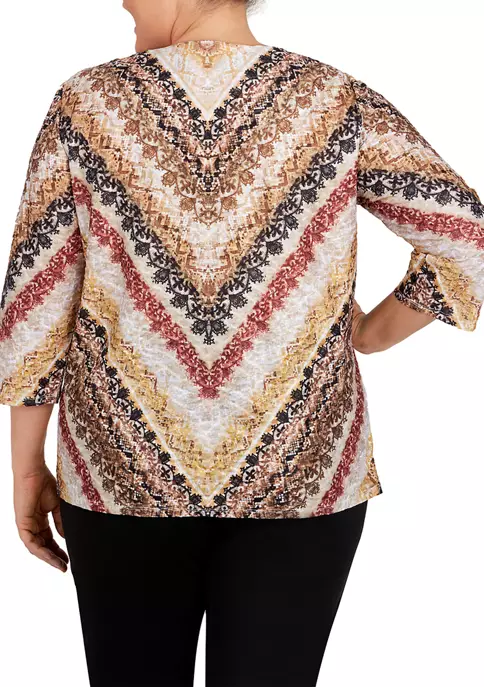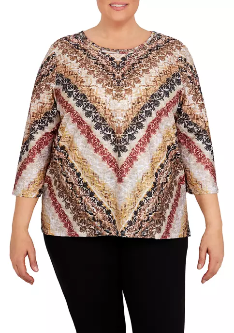 Best reviews of π Alfred Dunner Plus Size Sorrento Asymmetric Floral Embroidered Ribbed Top π₯°