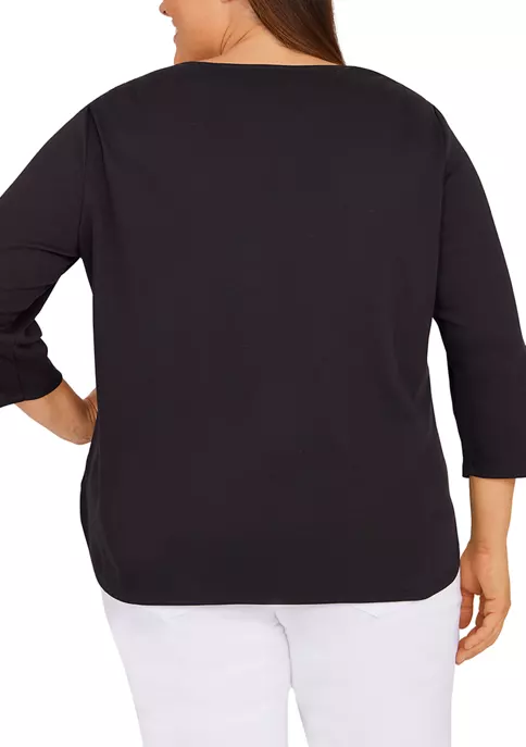 Best Sale π Alfred Dunner Petite Copper Canyon Asymmetrical Hem 3/4 Sleeve Floral Print Top π