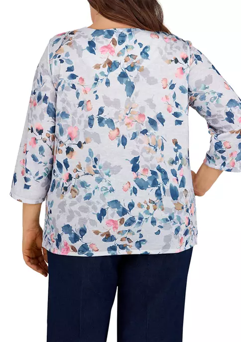 Best Sale π Alfred Dunner Petite Copper Canyon Asymmetrical Hem 3/4 Sleeve Floral Print Top π