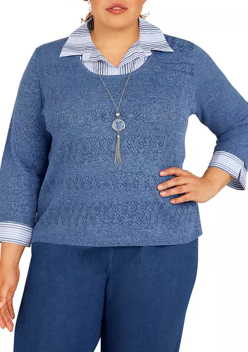 Wholesale β€οΈ Alfred Dunner Petite Copper Canyon Color Block 3/4 Sleeve Sweater β¨