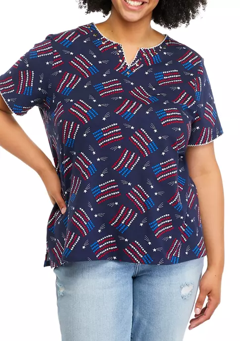 Promo π₯ Alfred Dunner Petite Copper Canyon Crew Neck Three-Quarter Sleeve Geo-Print Top π