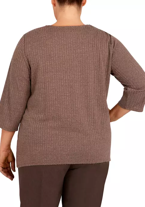 Wholesale β€οΈ Alfred Dunner Petite Copper Canyon Color Block 3/4 Sleeve Sweater β¨