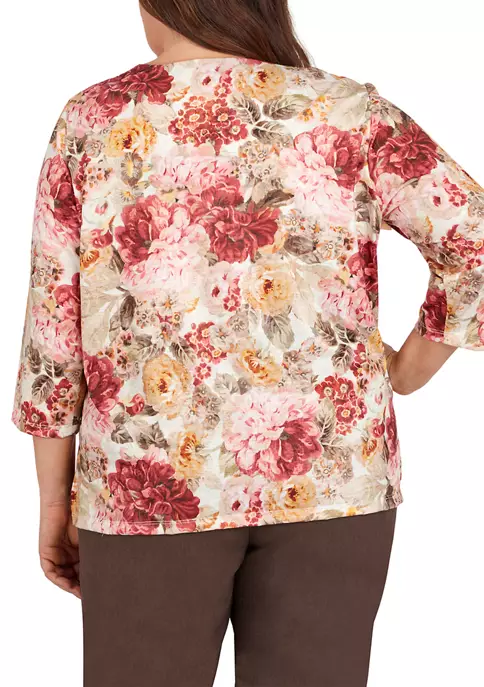 Best Sale π Alfred Dunner Petite Copper Canyon Asymmetrical Hem 3/4 Sleeve Floral Print Top π
