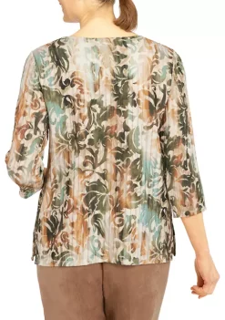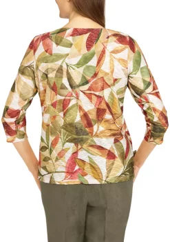Hot Sale π Alfred Dunner Petite Copper Canyon Crew Neck Three-Quarter Sleeve Top π