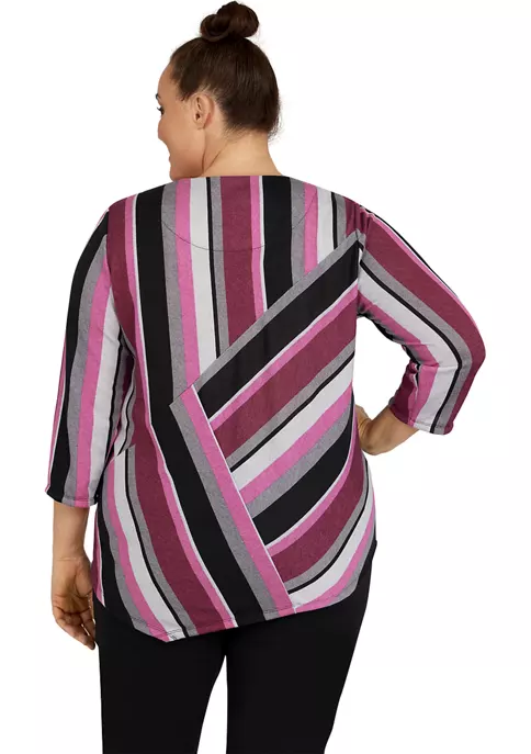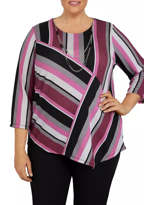 Best Sale π Alfred Dunner Petite Copper Canyon Asymmetrical Hem 3/4 Sleeve Floral Print Top π
