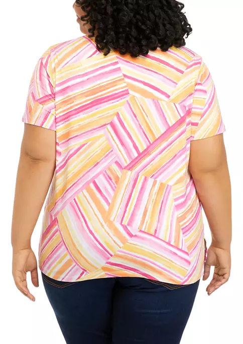 Best Sale π Alfred Dunner Petite Copper Canyon Asymmetrical Hem 3/4 Sleeve Floral Print Top π