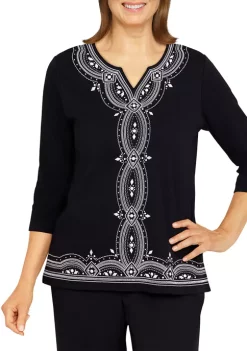 Best reviews of π Alfred Dunner Petite Sorrento Abstract Animal Smocked Hem Blouse π₯°