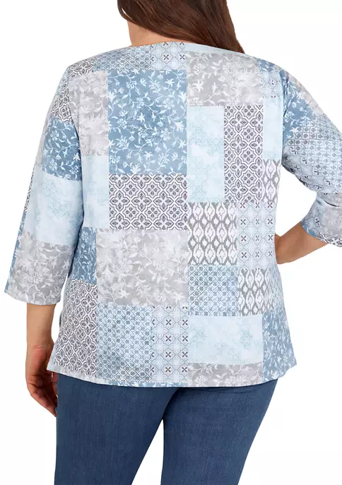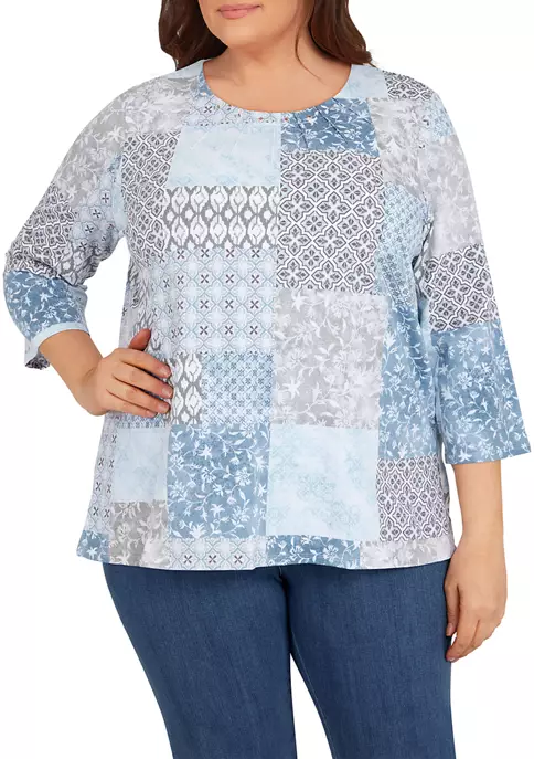 Best Sale π Alfred Dunner Petite Copper Canyon Asymmetrical Hem 3/4 Sleeve Floral Print Top π