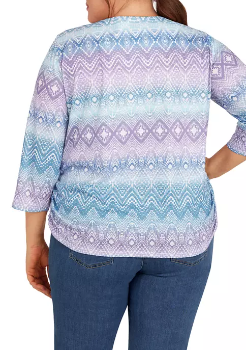 Promo π₯ Alfred Dunner Petite Copper Canyon Crew Neck Three-Quarter Sleeve Geo-Print Top π