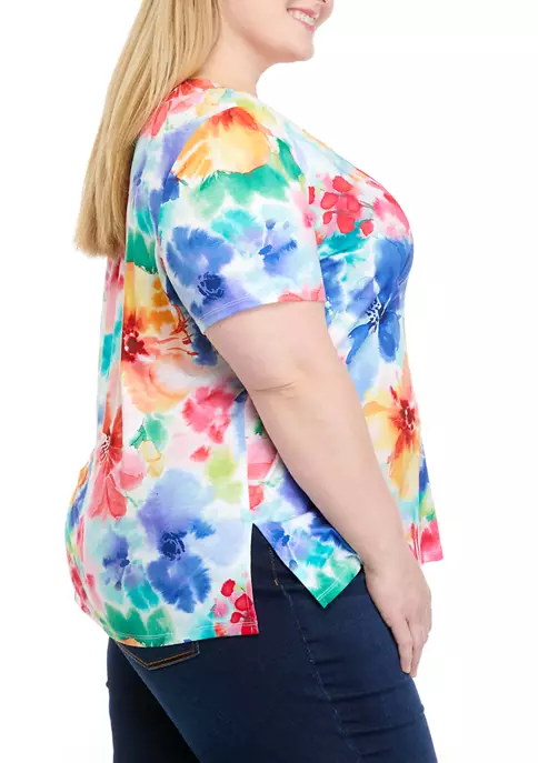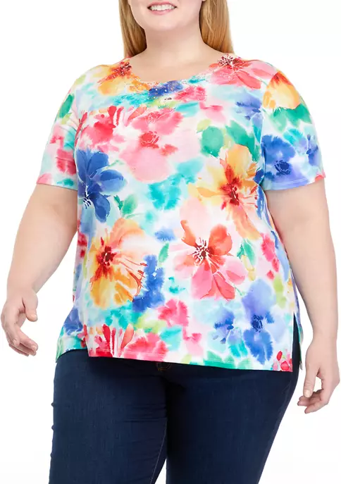 Best reviews of π Alfred Dunner Plus Size Sorrento Asymmetric Floral Embroidered Ribbed Top π₯°