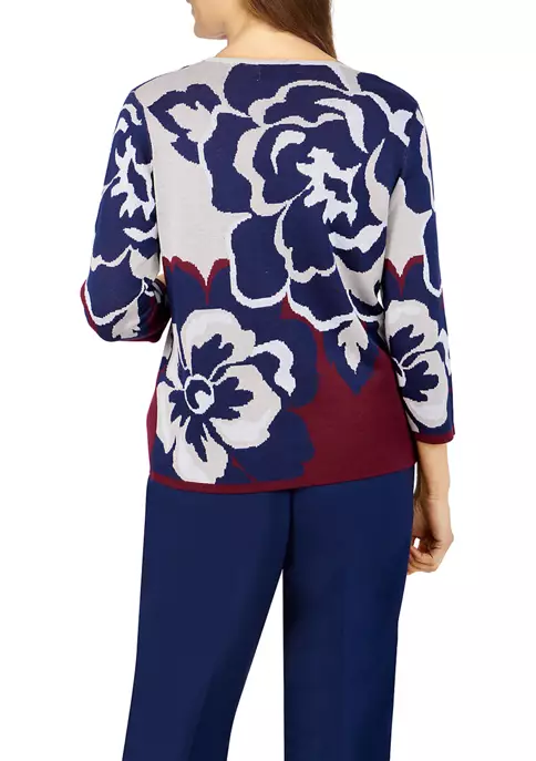 Budget π Alfred Dunner Petite Copper Canyon Crew Neck Long Sleeve Floral Print Sweater π
