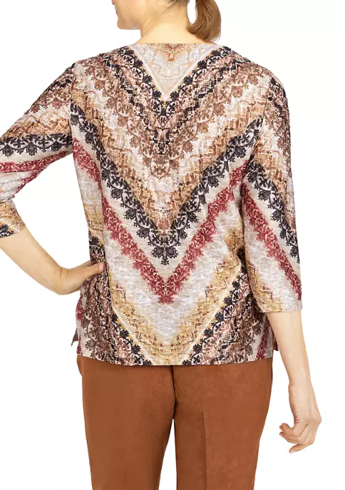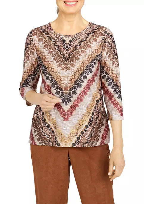 Hot Sale π Alfred Dunner Petite Copper Canyon Crew Neck Three-Quarter Sleeve Top π