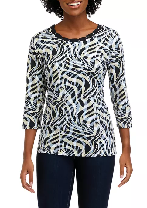 Hot Sale π Alfred Dunner Petite Copper Canyon Crew Neck Three-Quarter Sleeve Top π